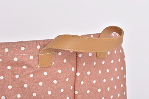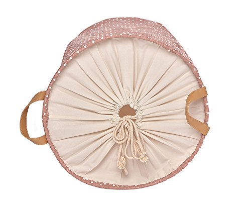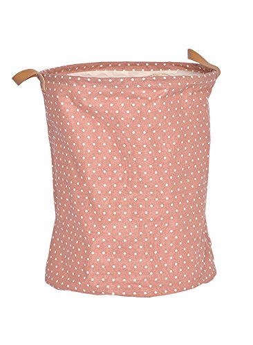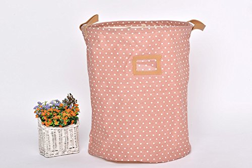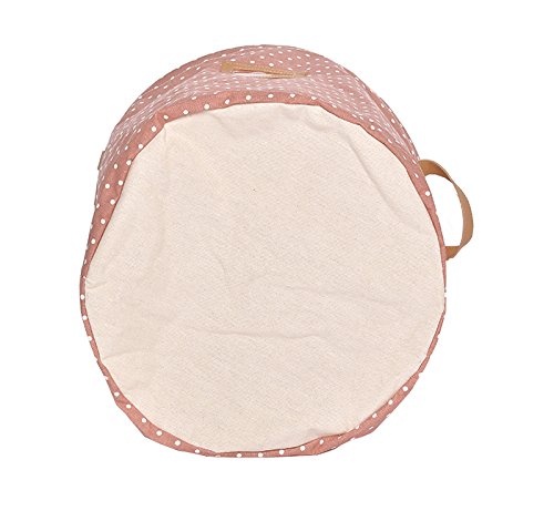 GreenForest® Cotone lino tessuto rotondo Storage Basket rosa puntini Bin naturale borsa lavanderia sacchetto tessuto bin bambini giocattolo
