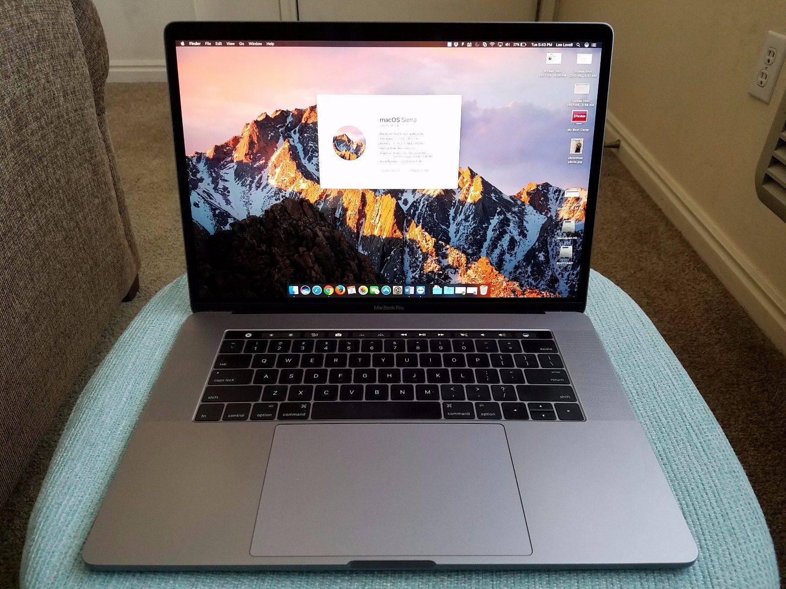 MacBook Pro 15 in. with Touch Bar 2.7ghz 16gb RAM 512gb SSD Late 2016