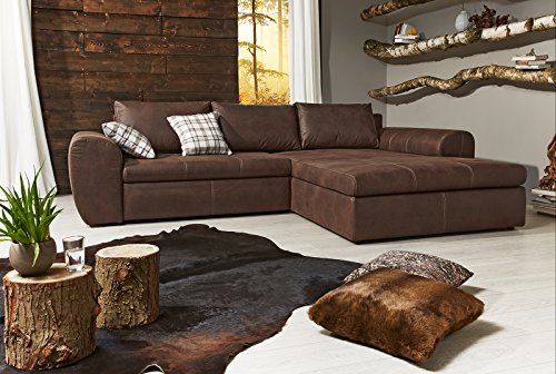 AVANTI TRENDSTORE - Divano ad angolo in colore pelle antica marrone - ca. 290x82-71x213cm