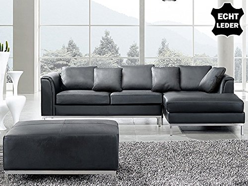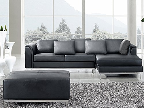 Divano sezionale - Angolare - In vera pelle - Con ottomano abbinato - Nero - OSLO