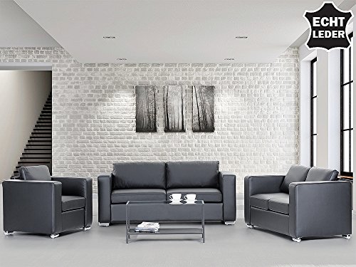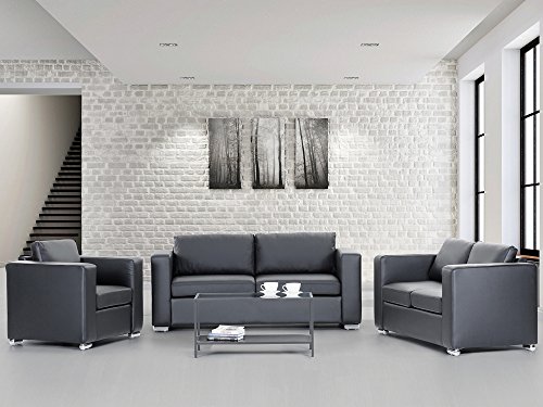 Salotto in pelle a 6 posti - Divano a 3 posti - Divano a 2 posti - Poltrona singola - Nero - HELSINKI
