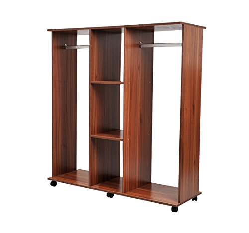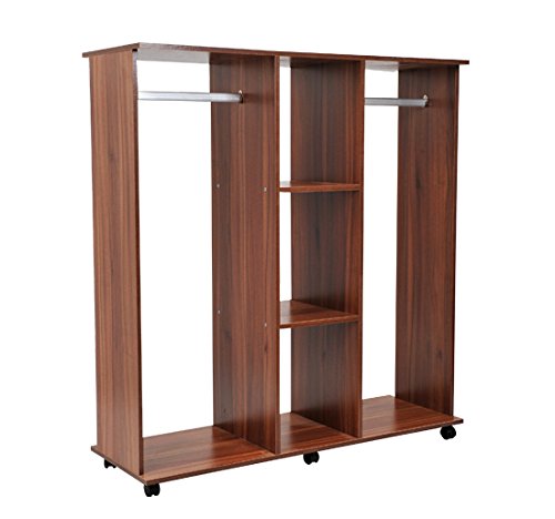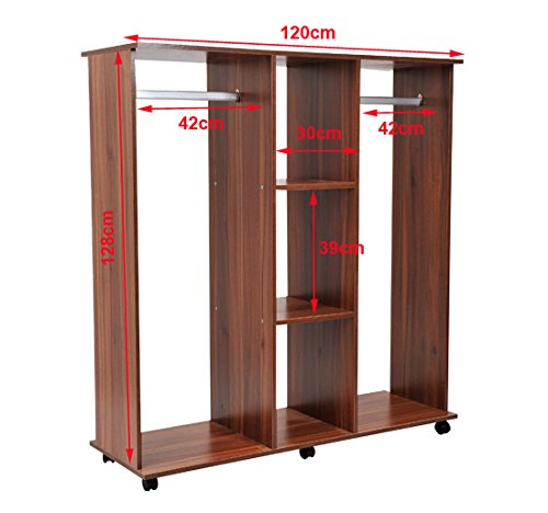 Homcom - Armadio Cabina Guardaroba Appendiabiti con Ruote in Legno 120x40x128cm Marrone