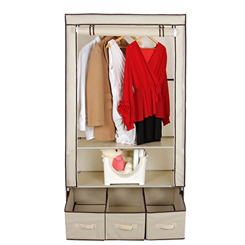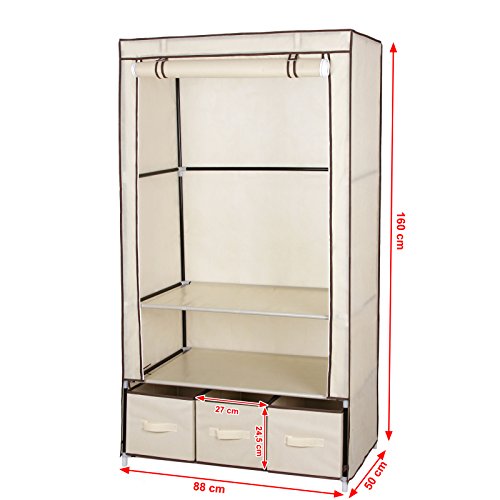 Songmics Armadio Cabina Guardaroba Appendiabiti In Acciaio Tessuto Con 3 cassetti Beige 88 x 50 x 160 cm RYG23M