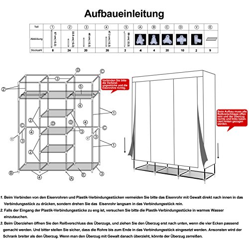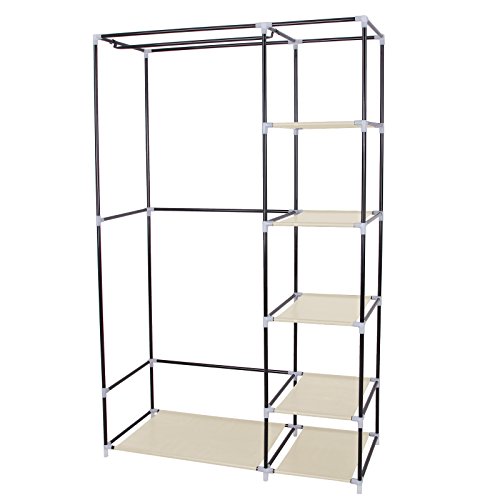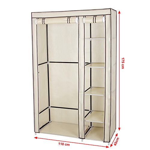 Songmics Armadio Cabina Guardaroba Appendiabiti In Acciaio Tessuto Beige 175 x 110 x 45cm LSF007M