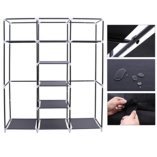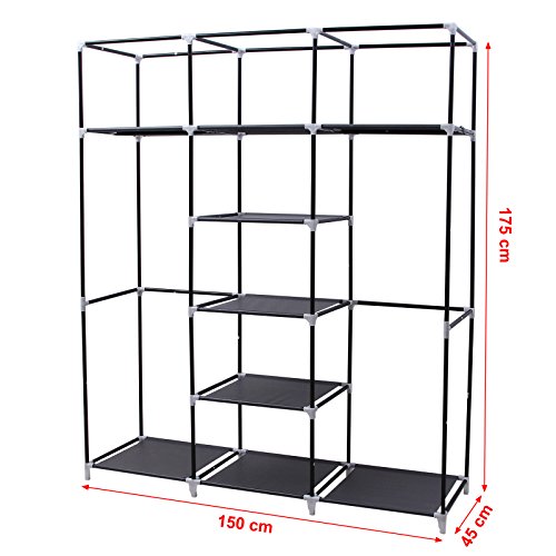 Songmics Armadio Cabina Guardaroba Appendiabiti In Acciaio Tessuto 175 x 150 x 45cm Nero RYG12B