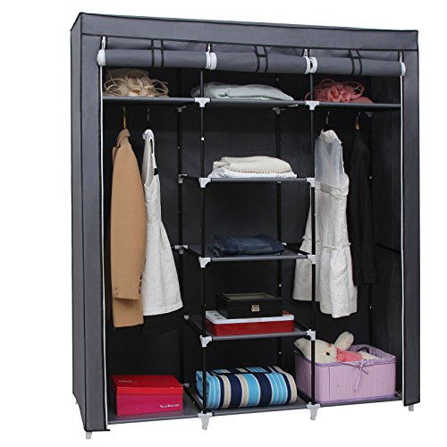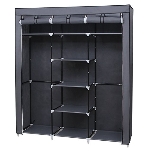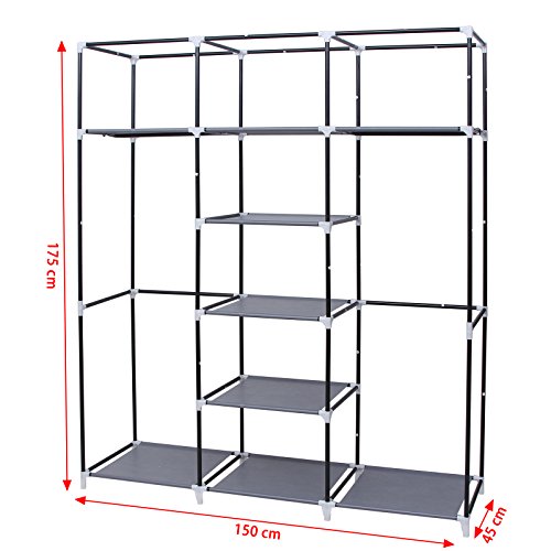 Songmics Armadio Cabina Guardaroba Appendiabiti In Acciaio Tessuto Grigio 175 x 150 x 45cm RYG12G