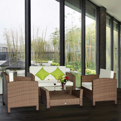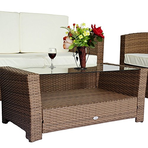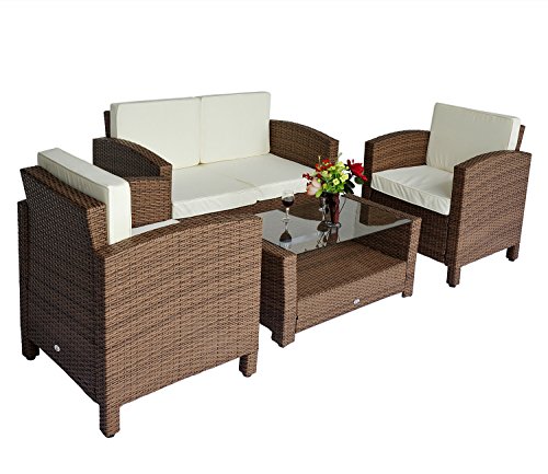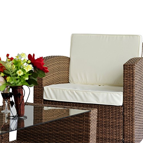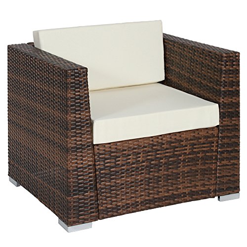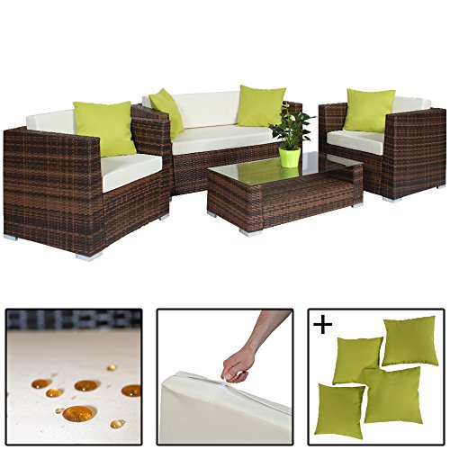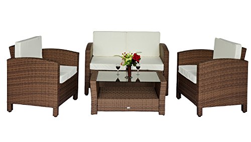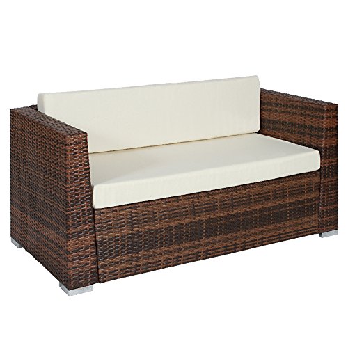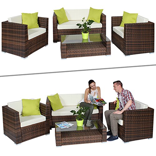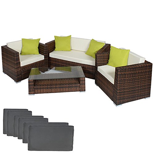 TecTake SET DI MOBILI RATTAN ALLUMINIO ARREDAMENTO GIARDINO SET COMPLETO marrone nero +2 Set di rivestimenti per cusci + 4 cuscini extra, viti in acciaio inox