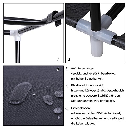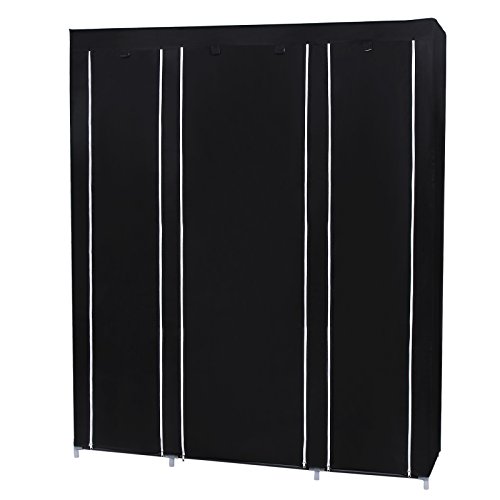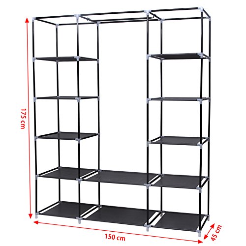Songmics Armadio Cabina Guardaroba Appendiabiti In Acciaio Tessuto Nero 180 x 150 x 45cm LSF03H