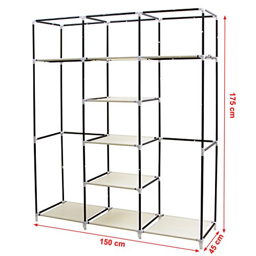 Songmics Armadio Cabina Guardaroba Appendiabiti In Acciaio Tessuto 175 x 150 x 45cm Beige RYG12M