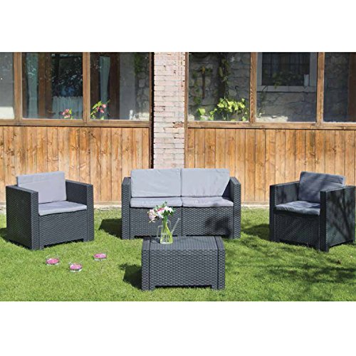 SALOTTO DA ESTERNO ARREDO GIARDINO IN RESINA EFFETTO POLIRATTAN CAPRI ANTRACITE C/CUSCINI
