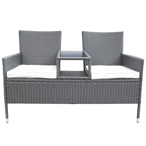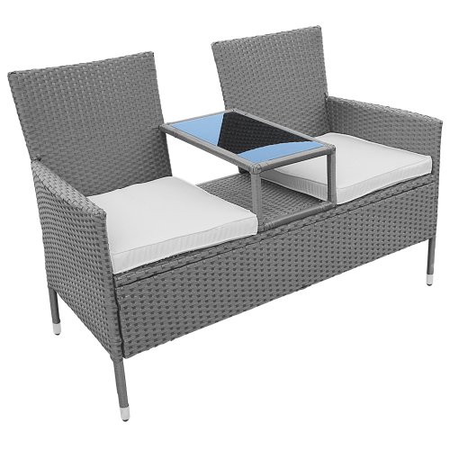 DIVANO POLTRONA DA GIARDINO 2 POSTI IN RATTAN COLORE A SCELTA (Grigio)