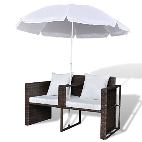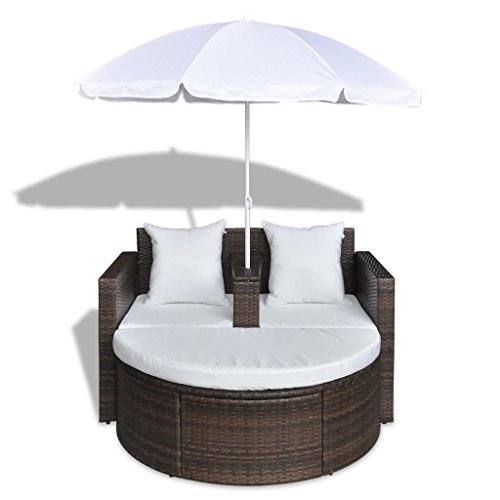 vidaXL Set lounge da giardino in polirattan con parasole esterno marrone
