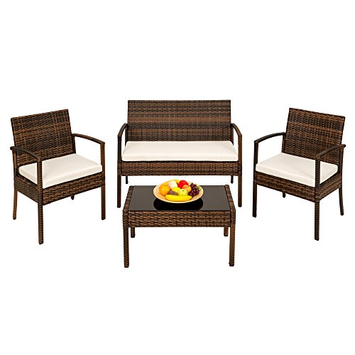 TecTake SET DI MOBILI RATTAN ARREDAMENTO GIARDINO SET COMPLETO marrone-nero