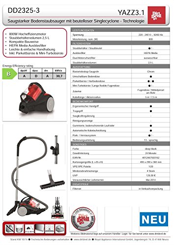 Dirt Devil DD2325-3 Aspirapolvere senza Sacchetto con Tecnologia Ciclonica Yazz-3.1, Spazzola Parquet e Mini Spazzola Turbo