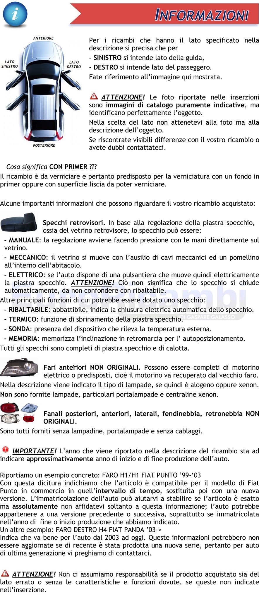 PRODOTTO NON ORIGINALE DELLA CASA AUTOMOBILISTICA MA OMOLOGATO E ADATTABILE!